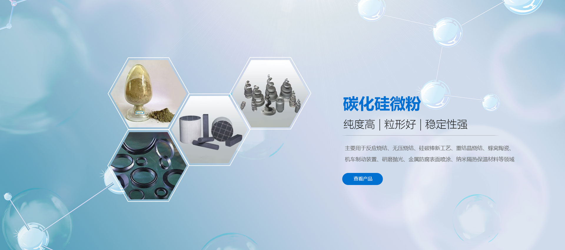 濰坊凱華碳化硅微粉有限公司成立于2002年,國(guó)家高新技術(shù)企業(yè),公司占地40畝,標(biāo)準(zhǔn)廠房19000平方,辦公樓、研發(fā)2000平方,年生產(chǎn)能力3萬噸。一直從事陶瓷級(jí)微粉的生產(chǎn)銷售,所生產(chǎn)的微粉具有純度高、粒形好、穩(wěn)定性強(qiáng)等特點(diǎn),主要用于反應(yīng)燒結(jié)、無壓燒結(jié)、硅碳棒新工藝、汽車尾氣處理(DPF)、納米隔熱保溫、機(jī)車制動(dòng)、防腐涂料、研磨拋光、橡膠樹脂等領(lǐng)域。標(biāo)準(zhǔn)產(chǎn)品有:F240、F1200、W40、W28、W20、W14、W10、W7、W5、W3.5、W2.5、W2、W1.5、W1、W0.5、D3E、5S、100F及整形高密度系列綠碳化硅微粉,廣泛應(yīng)用于燒結(jié)、防腐、研磨拋光、涂腐等廣大領(lǐng)域。